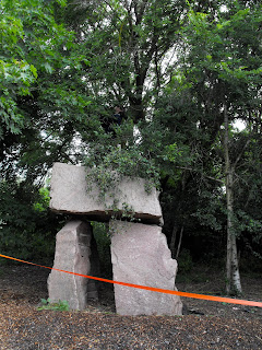 The largest single structure is the set of rocks from Scotland. This pink granite comes from the quarry which provided the fascia for the new Scottish Parliament building. Set up to accentuate their mass and grandeur they function as a place of shade and shelter and a hiding place, dominating your field of vision as you look towards them from the field drive. It feels like part of the mountainside where it originated and it shows how natural materials fit into any environment. These are also popular with our sheep who like to shelter beneath them.