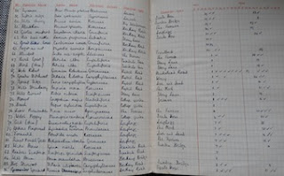 As the entry below indicates, my gran recorded a total of 324 plant species. The columns record: English name, botanical name, natural order, habitat, the months observed and the numbers of plants observed.